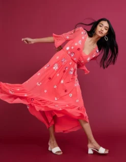 Ted Baker Gabie One Shoulder Drape Midi Dress, Light Pink/Blush