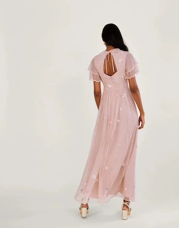 Coast Lisa Tan Premium Hand Embellished Midi Dress, Blush Pink/Multi