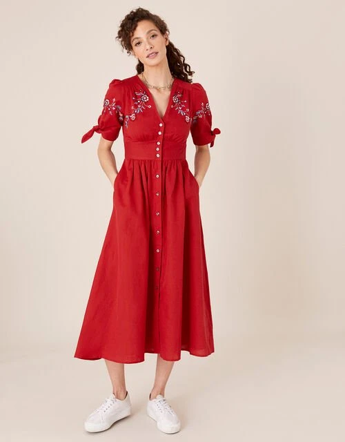 Monsoon Dolly Floral Embroidered Midi Dress Red/multi
