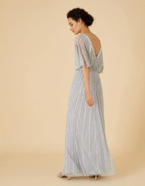 Monsoon Embellished Maxi Dress In Recycled Polyester Silver