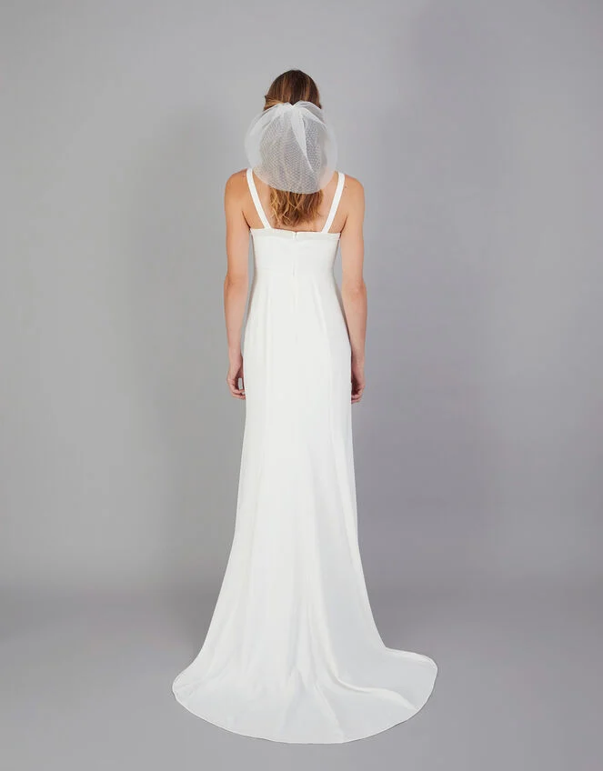 For the finishing touch, find tiny buttons in the lining so you can lift the train up and continue to party until the early-hours of the reception. Ivory
