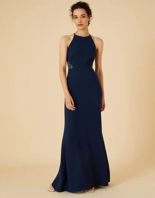 Dorothy Perkins Square Neck Embellished Pleated Maxi ​Bridesmaid Dress, Light Blue