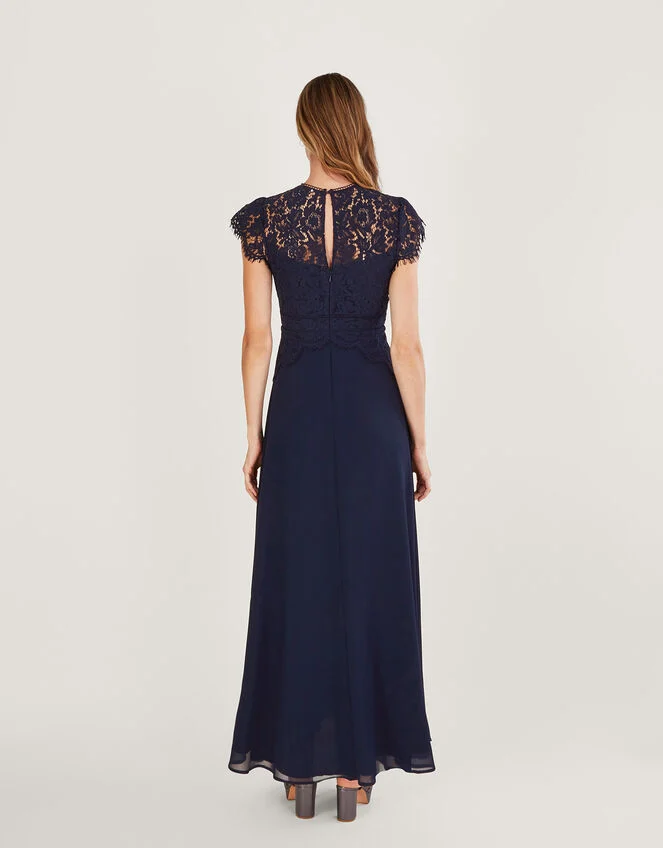 Louise is the perfect event dress: her high neck lace bodice is so chic. She cinches in at the empire line and falls into a flowing maxi-length skirt that’ll swish as you mingle round the party.