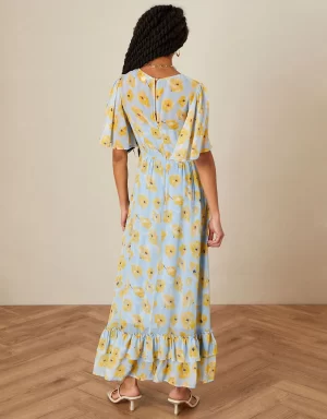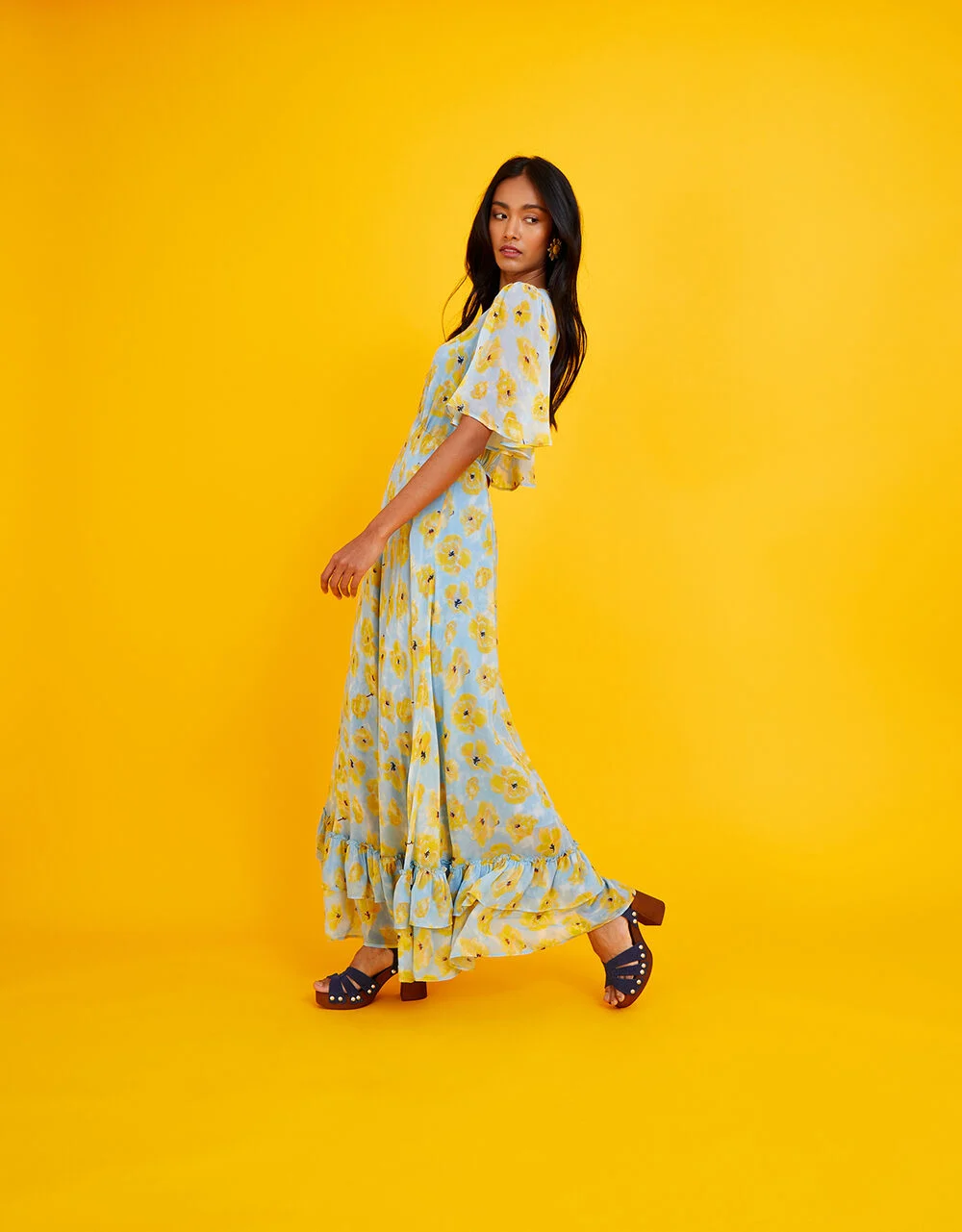 Dorothy Perkins Square Neck Embellished Pleated Maxi ​Bridesmaid Dress, Light Blue