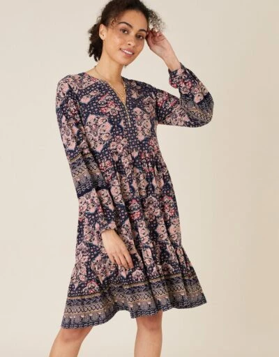Our Rowan dress is here to infuse your wardrobe with intriguing print and all-day comfort. An easy-to-wear daytime option, Rowan is created in organic cotton and features long sleeves and a relaxed, draping silhouette.