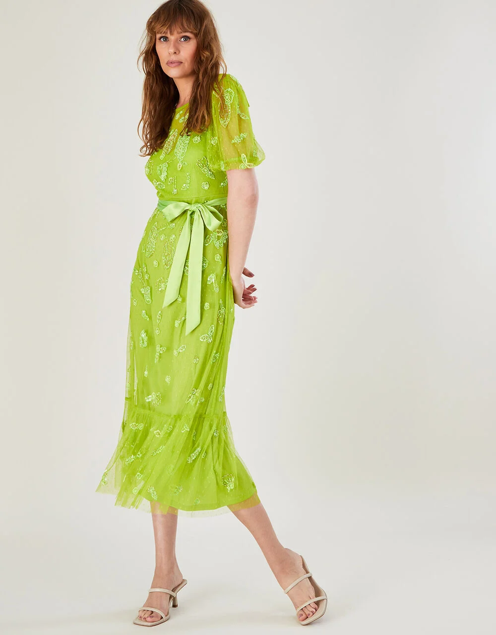 Monsoon Sofia Embellished Midi Dress Bright Green