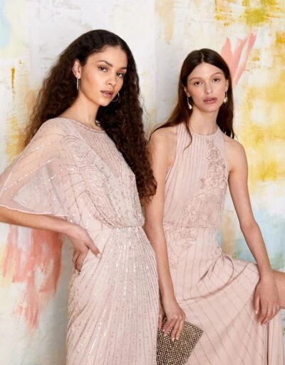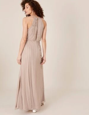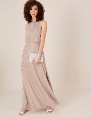 Monsoon Summer Beaded Floral Maxi Dress Pink/blush