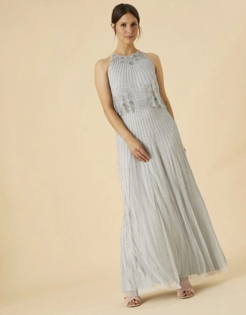Monsoon Suzanne Embellished Maxi Dress In Recycled Polyester Blue/mint Green