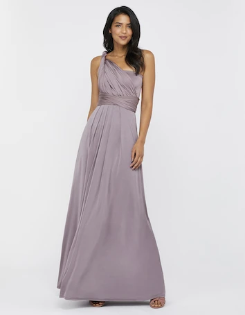 This beautiful lilac wear your own way multiway bridesmaid maxi dress from Monsoon features an adaptable neckline and soft silhouette. Halter, one shoulder, strapless, you name it, this dress can do it! Ideal for varies styles and bridesmaids, this dress can be worn so many different ways! Twist, wrap and tie for endless bridesmaid styles.