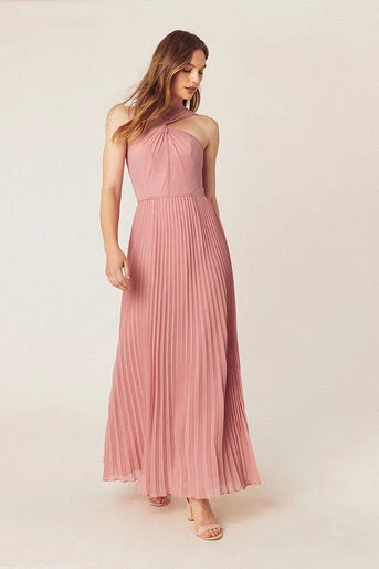 This beautiful pink bridesmaid dress from Oasis features a halter neckline and soft silhouette. The modern fitted design and silhouette creates a stunning silhouette, ideal for a special wedding.