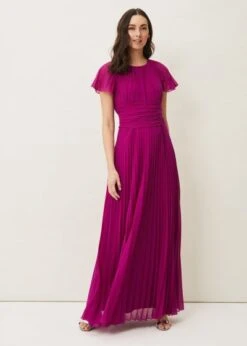 From Collection 8, our stunning range of premium evening dresses. Pleated through for beautiful movement, our Astrid Dress falls to a romantic maxi length, and is finished with short fluttery sleeves and an oversized waist tie to highlight your silhouette. Perfect for when you can RSVP again.