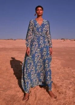 Make a floor-sweeping statement in our Claudia maxi dress. Designed with a stunning blue all-over print and featuring a feminine V-neckline, pleated skirt and delicate contrast crochet detailing on the sleeves, itβs perfect to style with metallic heels and accessories to your next special event.