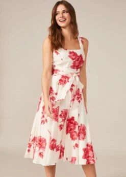 We looked back through our print archives to create this heritage floral print dress. Designed in a 1950s-inspired silhouette, the Elfrida Dress features a striking lipstick pink floral print throughout and is framed by a square neckline and matching waist tie. We’ve added handy pockets to this style and empire seaming on the bodice to add shape.
