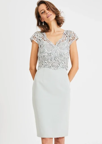 Phase Eight Ellise Lace Bodice Dress, Duck Egg Blue