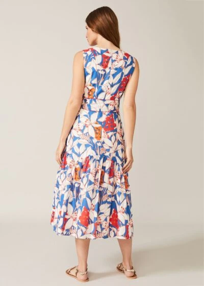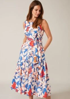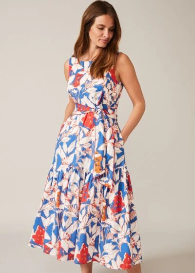 A statement piece for your warm-weather wardrobe, this Etta Floral Dress from Phase Eight is designed in a fit and flare silhouette with an on-trend tiered skirt and matching tie belt.