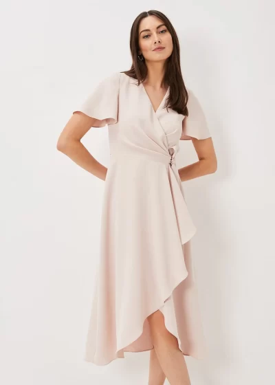 The perfect occasion dress, our Julissa wrap dress is a must-have this season. Designed in a beautiful pale pink shade, the dress features a tie waist and frilled edging, creating an effortless layered silhouette. For the ultimate wedding guest look, pair with a fascinator and matching accessories.