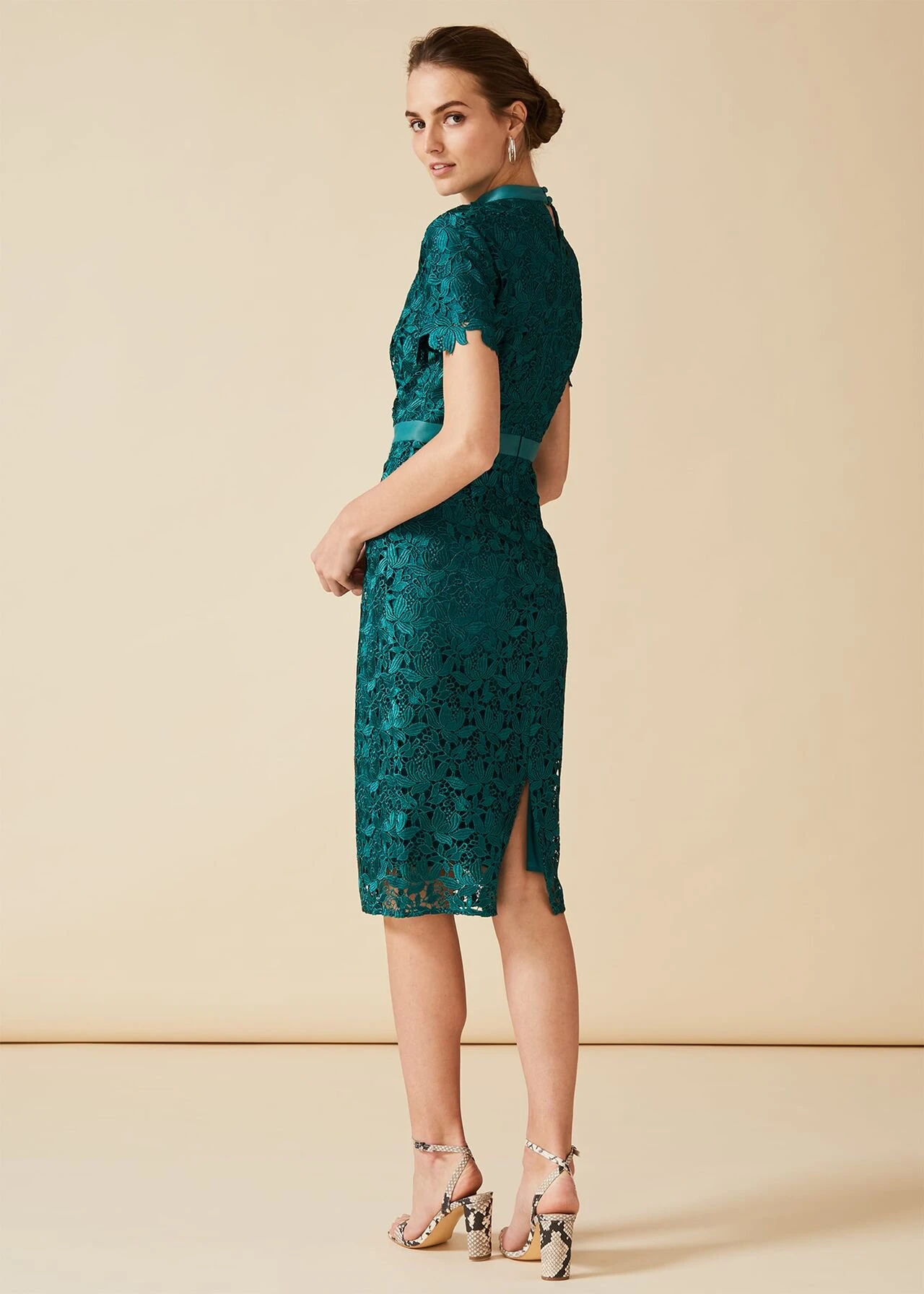 Nothing will refresh your wardrobe like an elegant green shift. This stunning striking green Phase Eight Marietta Guipure Lace Shift Dress from Phase Eight is at once fresh and modern, and detailed with a high neckline, a lace body and fitted silhouette.