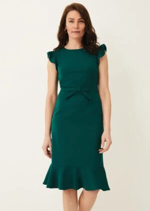 A party dress with a real sense of occasion, all tied up with a matching bow waistband. We love the fresh forest green shade that’s perfect for new season style.