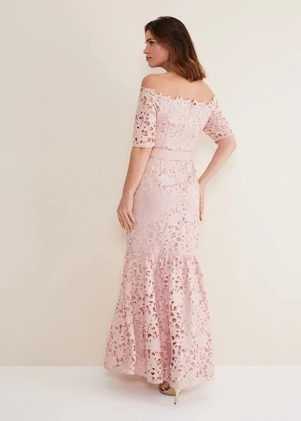 Make a statement at your next special event. Crafted in all-over rose lace detailing, our Tallulla dress is designed with a bardot neckline, short sleeves, matching covered belt and falls to an elegant fishtail silhouette. Wear with matching heels and clutch to your next special event.