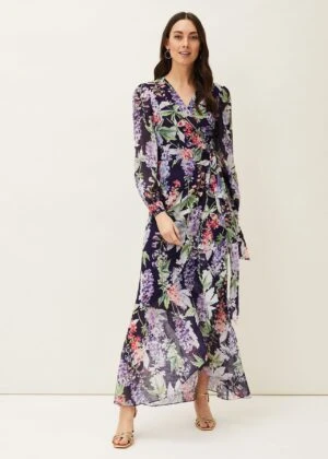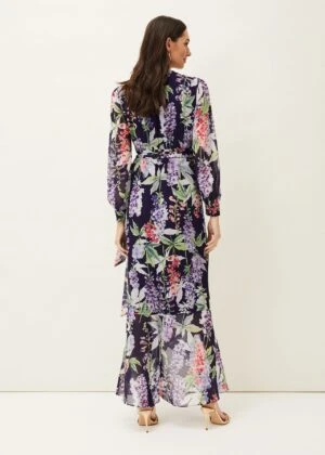 Bursting with vivid colour, our Winafred Maxi Dress is a standout occasion style. Designed with a trailing bright floral and botanical print, this maxi’s style notes include a faux wrap bodice, frill detailing through the skirt and blouson sleeves. If you like this print, see also our Winifred Jersey Dress.
