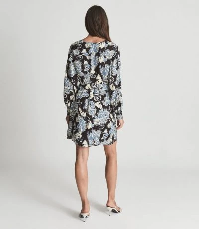 Made from a refined viscose fabrication with a rich drape, the Abbie dress comes in blue and is printed with a floral motif that adds texture to looks. The skirt has movement, while the shirting sleeves and the refined top make this dress perfect for work and occasions.
