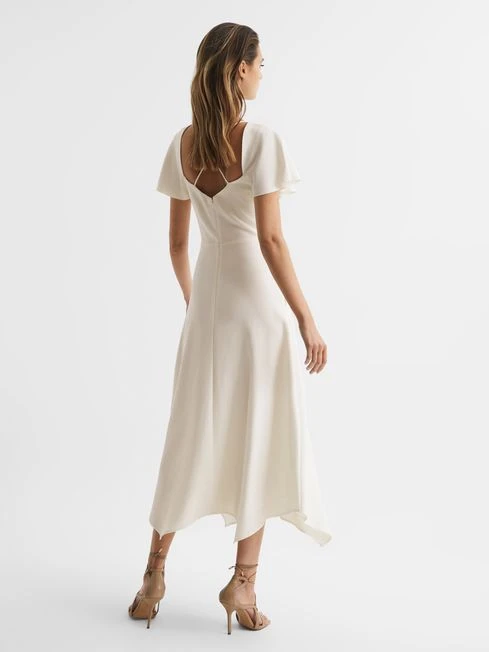 The white Eleni maxi dress is crafted from a fluid fabrication that’s slightly cinched at the waist to accentuate the natural frame. Cap sleeves are added for femininity, alongside a subtle pleat to the chest. The reverse features a cross-back detail. Style with heels for a sophisticated occasion edit.