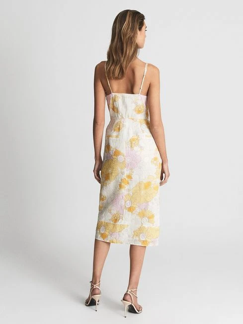 The kay in a floral print is a modern take on summer chic. The refined v-neckline and tie waist detail offer a unique take on elegance. Crafted in a lightweight linen, this midi-length piece lends itself to a slender finish. Pair with barely-there sandals to complete this classic look.