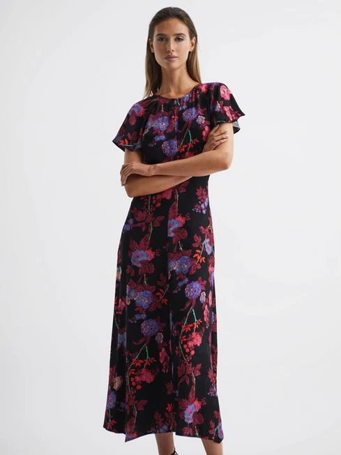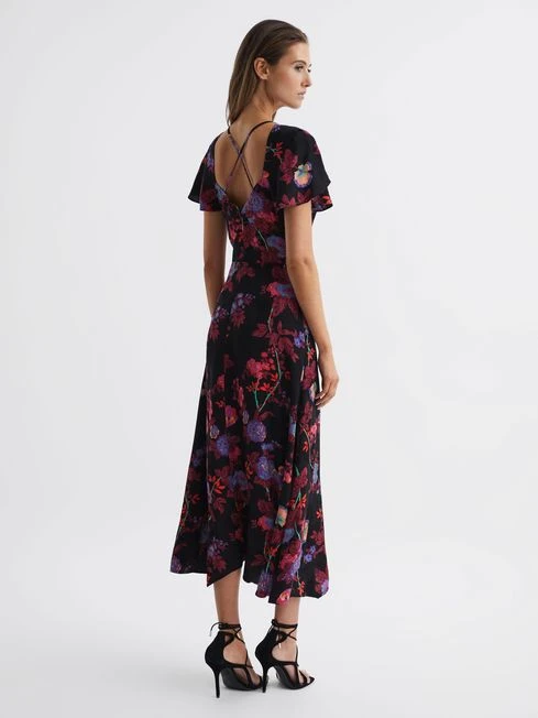 The Leni midi dress is crafted from a lightweight, sweeping fabrication in a floral print for feminine appeal. This is accentuated by fluid cap sleeves and a loose-fitted skirt. A cinched waistline balances the look and crossed back straps are added for an elegant finish. Style with heels for a dynamic eveningwear edit.