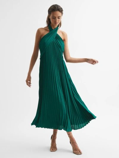 Turn heads in the Roya dress, expertly crafted in an all-over pleat design that spotlights movement. It is designed in a midi length and finished with a halterneck to flatter the silhouette. Simply add heels and finish the look with a clutch from our accessories collection.