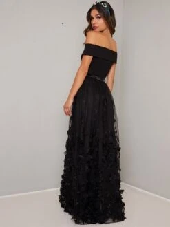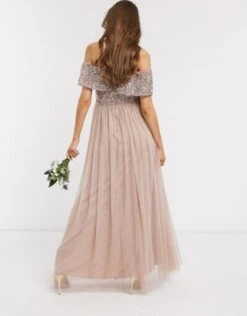 ASOS Maya Maternity Bridesmaid Bardot Maxi Tulle Dress With Tonal Delicate Sequins In Taupe Blush