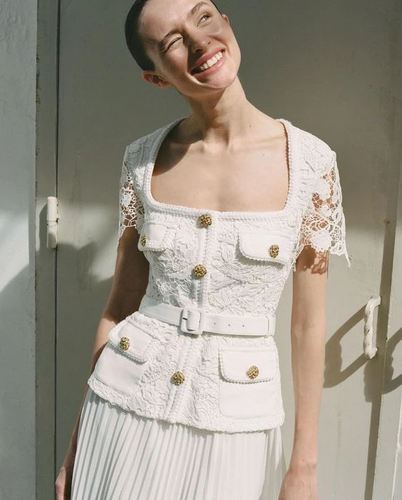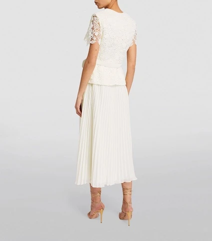 Self-Portrait continues to defy expectations with pieces like this dress – crafted to imitate well-curated separates while boasting ease of wear thanks to its one-and-done design. The bouclé jacket finds its inspiration in the ‘60s, with its peplum hem wonderfully juxtaposing against the vertical lines of the pleated skirt.