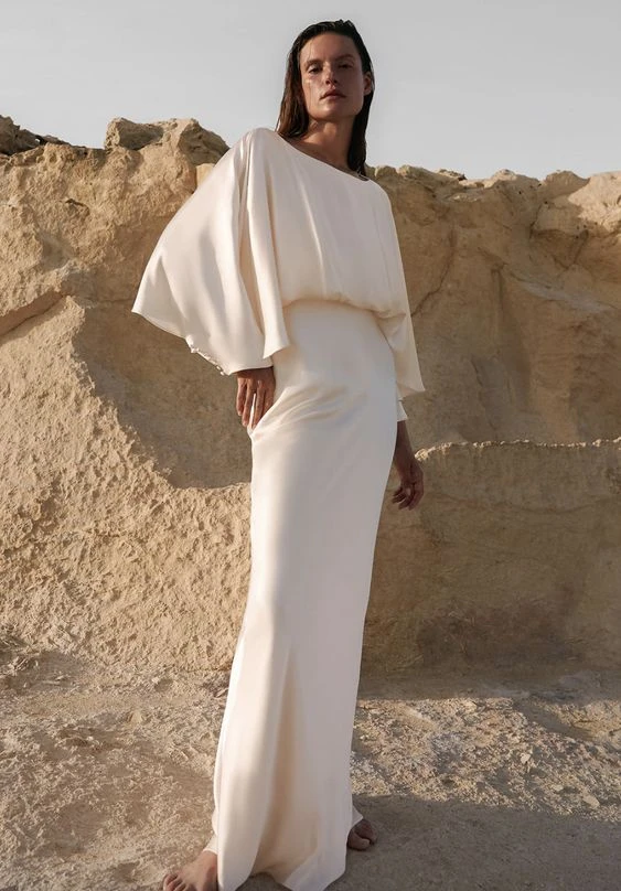 Open back maxi dress in a silk touch fabric with a luxurious sheen.