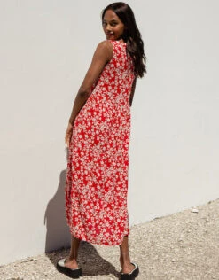 Threadbare Women’s Red Floral Print Tiered V-Neck Midi Dress