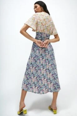 Coast Floral Long Sleeve Organza Midi Dress, Cobalt Blue/Blush