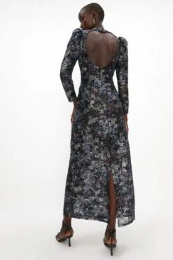 Coast Lisa Tan Premium Lace Tuxedo Dress With Gem Buttons, Ivory