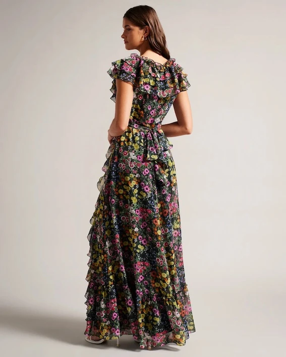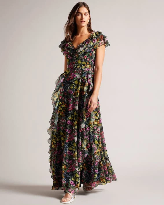 Effortlessly chic, the ADIIE maxi dress is perfect for making an entrance. With its elegant V-neckline and cascading waterfall ruffles, this floral dress is a true showstopper. Dress it up with heels for a special occasion or keep it casual with sandals for a day out.