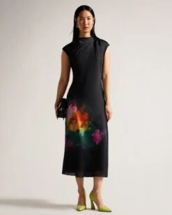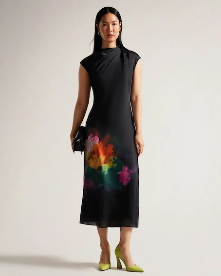 Delicate and eye-catching, AVERIEE is a modern twist on the classic A-line silhouette. Our art print adds a splash of colour to your every step, while a high pleated neckline switches it up from the norm.