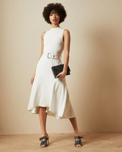 Dress to impress with CORVALA this season. A silhouette-skimming midi dress, it comes with an elegant high neck, while the belt detail provides a flattering finish.