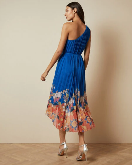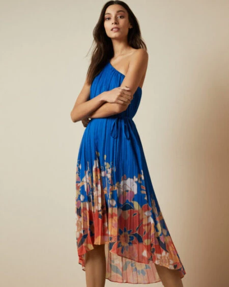 Attending a formal event? Ensure you look the part with the DAHLARI dress. An asymmetric piece, this one shoulder dress is further elevated with a dip hem, whilst the Cabana print on the skirt has a metallic detail on the pleats for a subtle shine.