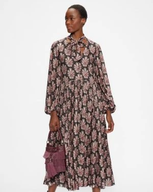 The dreamy DHANA dress is Autumnal elegance personified. Packed with vintage-inspired details: a pussy-bow neckline, balloon sleeves, and 70s-inspired paisley print. Team with statement earrings and touches of velvet to add a touch of romance to your look. Or add a tougher, modern edge with chunky boots and fluffy coat.