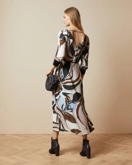 Stuck in the midi of a style dilemma? Look to DIYONA to solve your woes. Designed in the geometric swirls of the Masquerade print, the low back detail completes the piece with an element of intrigue.