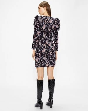 Add some flower power with DRACENA, the floral printed mini dress. With puffed shoulders and a square neckline, she combines a 1960s feel with a very modern edge. Team with heeled boots for a perfect weekend dinner date look.