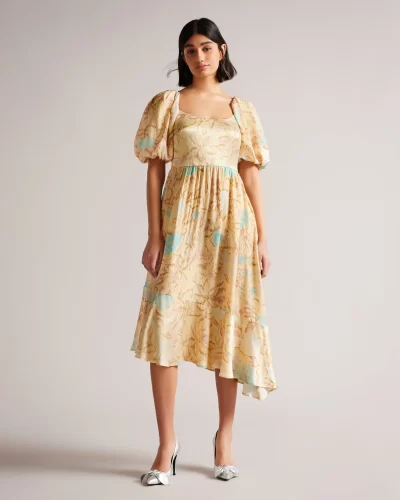 Shake things up this season. EMER has a playful asymmetrical design and a vintage-inspired floral print that will brighten up any summer gathering. Combine with simple heels and a handbag for a sophisticated party look.