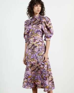 Psychedelic silk. If you’re looking for something truly special, then look no further than HARIAT. A retro print, 100% silk, puff sleeve dress with fun in the front and drama in the back. This dress speaks for itself, but if you want to take it to the next level, pair it with some strappy heels for a truly delectable look. One to get excited about.