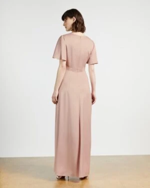 Make an entrance. Make a striking impression in HEDII. An elegant wrap style, maxi dress, that seamlessly cascades over your body, flattering you in all the right places. Finished with subtle pleats and a side slit, this dress has delectable style with a just hint of drama. Disclaimer: heads will be turning.