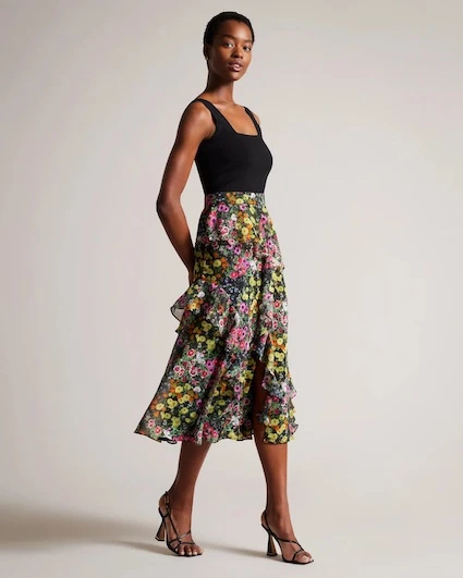 The JENNIAS dress is the answer to all your outfit dilemmas. Its knitted bodice hugs your curves in all the right places, while the ruffled skirt elevates the silhouette. Our ditsy floral print is perfect for any occasion, whether it’s a garden party or a dinner date with family.
