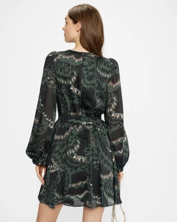 Float like a butterfly in CHRISSY, our full skirted mini dress. Featuring long puffed sleeves, a keyhole neckline and a bohemian butterfly wing print, it has loads of 1960s charm. Team with flicked eyeliner and chunky boots for retro party dressing with a modern edge.