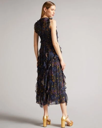 KAROLIA is retro, reinvented. Featuring a flowing waterfall silhouette and our Retro Floral print all-over, this midi dress looks great on the dancefloor or at sit-down dinners alike.