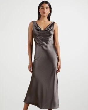 A sophisticated choice when it comes to eveningwear, our KINSEYY dress is a great addition to any woman’s formalwear repertoire. With a cowl neck, this sleeveless midi should be paired with some killer stiletto heels and an evening bag for a final flourish.