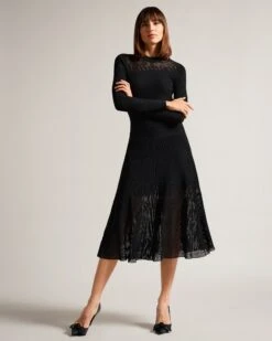 Ted Baker DEYJA Graduated Midi Dress With Ruched Puff Sleeves, Purple/Multi